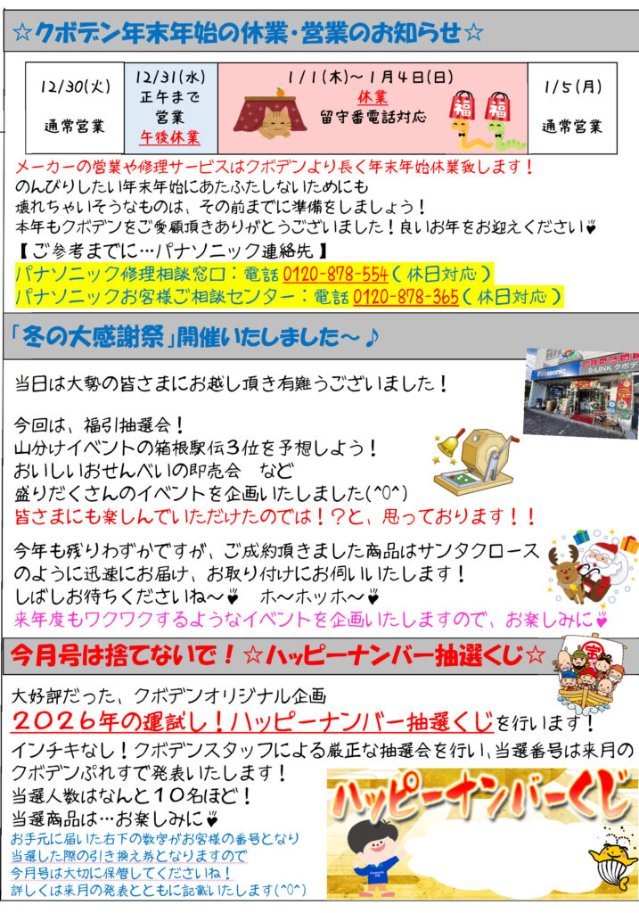 2026年も皆さまに笑顔になっていただけるような、クボデンぷれすをお届けしたいと思いますので、